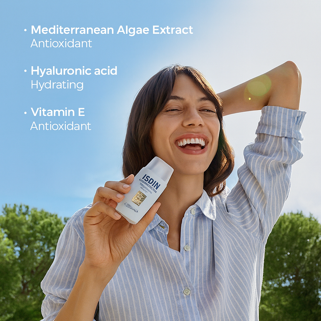 ISDIN FotoUltra Active Unify Fusion Fluid SPF 50+ is an advanced facial sunscreen that not only protects against harmful UVA and UVB rays but also helps reduce dark spots and unify skin tone. With its ultra-light Fusion Fluid texture, it melts into the skin without leaving a greasy residue. It is specially formulated for people dealing with hyperpigmentation, uneven tone, or sun-induced dark spots.